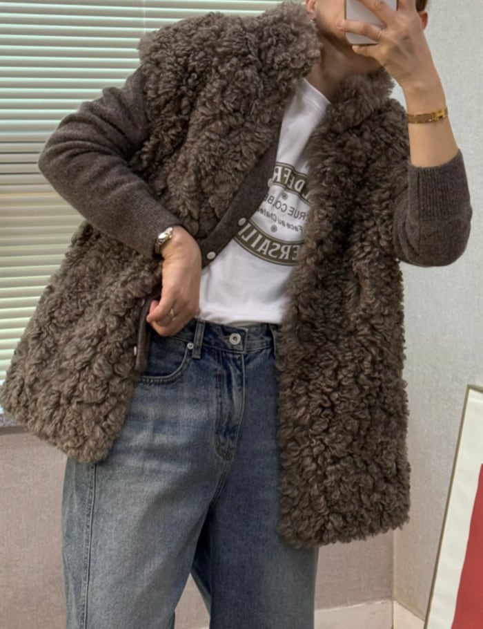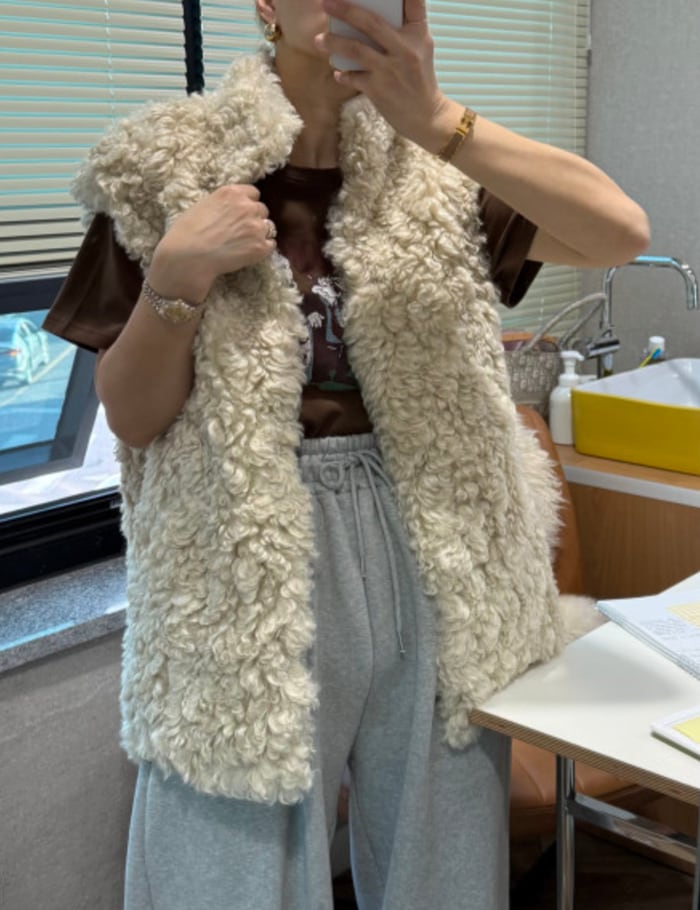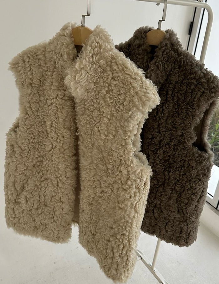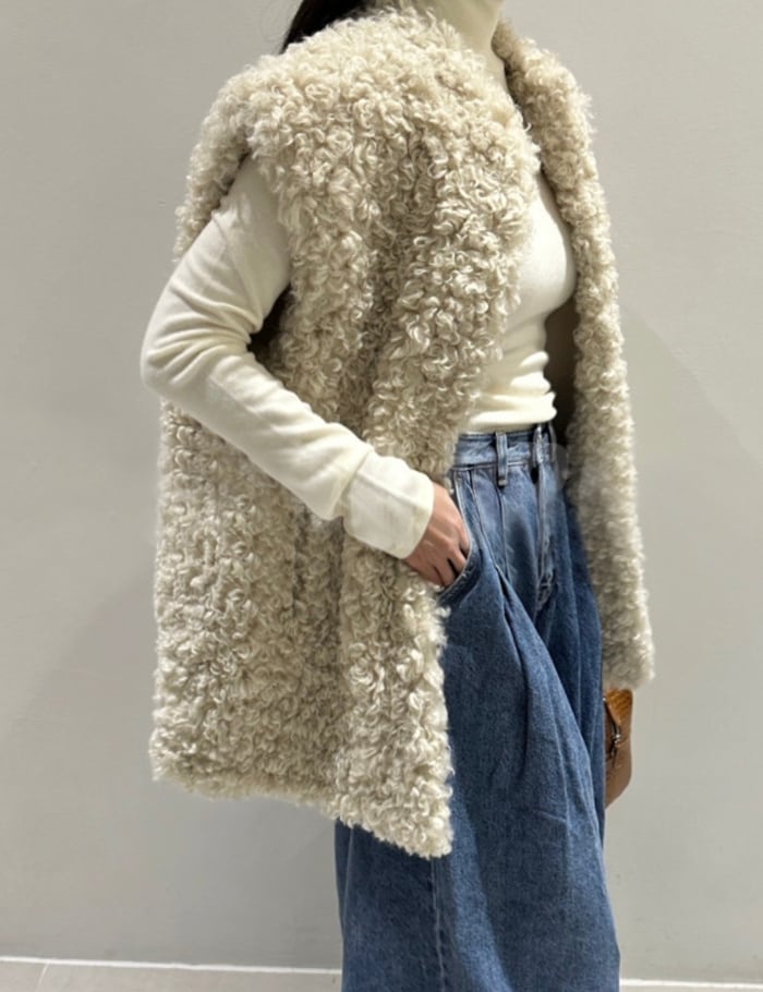 【新作5%OFF・3日間】Poodle High-neck Fur Vest_2colors
