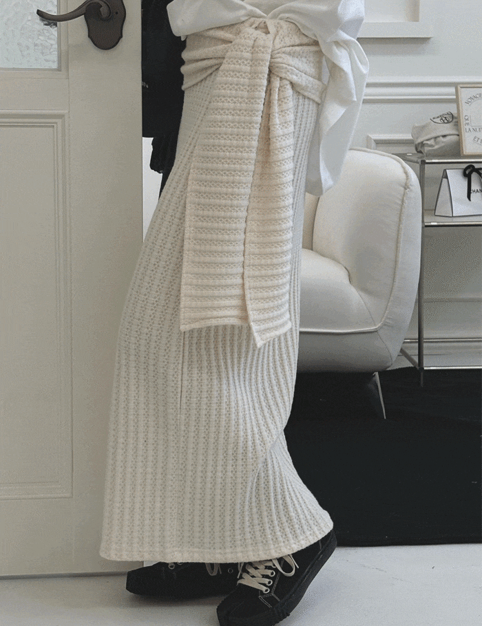 【新作5%OFF・3日間】Waist-Shawl knit Skirt_2colors