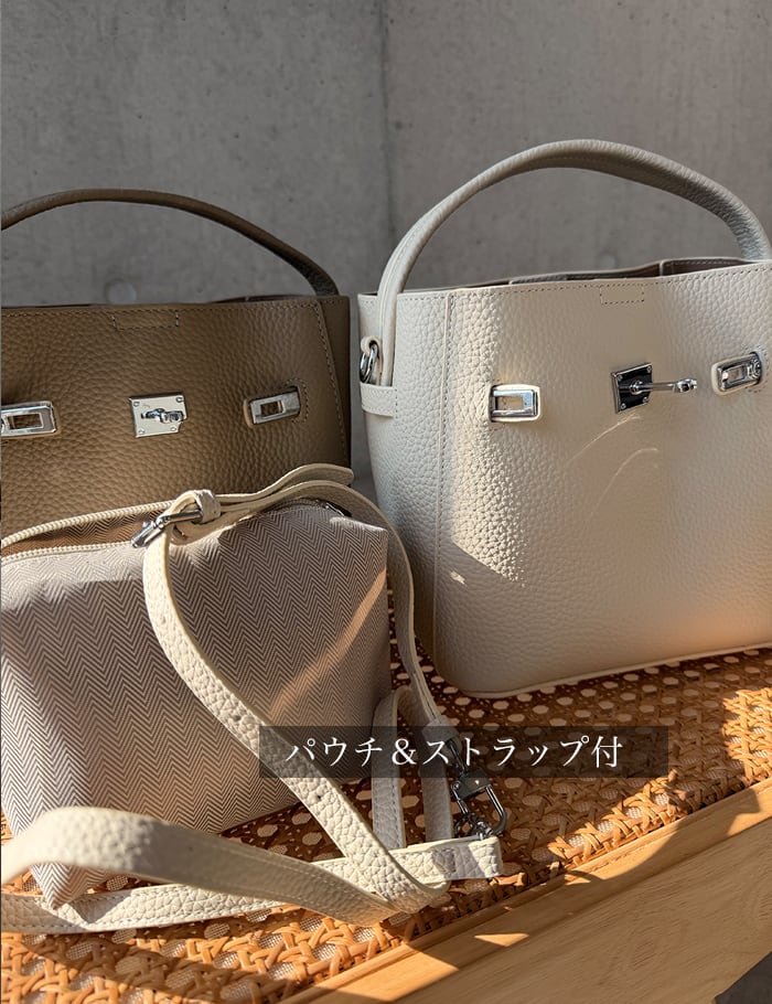 <牛革100%・バックルバッグ> 【商品番号】mienne-26ss-bag006 -カラー:Ivory / Gray-Beige /Camel-Brown / Black -サイズ:Free(onesize) ・本体:横19cm、縦20cm、マチ13.5cm ・パウチ:横16cm、縦11cm、マチ10cm ・ストラップ:102cm〜118cm -Material : 牛革100% -Model : 164cm ============================== ※※ Notice!!必ずご確認をお願い致します ※※ <発送日について> ●基本、選択肢に記載されております発送予定日以内に発送をさせて頂きます。 ●記載されております営業日は土・日・祝日を除いた平日のみとなります。 ●混雑時は発送までお時間を頂く事がございまして、メールにてご連絡させて頂きます。 ●発送時期の遅い商品と一緒にご購入された場合、そちらの商品に合わせ、まとめての発送となります。ご了承くださいませ。 ●日本国内ヤマト運輸にて発送させて頂いております。 <ご入金について> ●銀行振込・コンビニ払いご指定の場合、ご入金確認後から発送日カウントになりますのでご了承ください。 <Shoesご購入のお客様へ> ●Shoesの場合、一点一点オーダーに入るため不良品以外の交換・返品は厳しい場合がございますので 事前に「ショップに質問する」や「インスタDM」をご利用頂き、気になる事などご質問する事をお勧めします。 <発送前キャンセルになる場合> ●予想以上のご注文殺到や季節変わり目に仕入れ先での品切れの場合などメールにてキャンセルについてご案内を送らせて頂く場合がございます。 <発送後キャンセルご希望の場合> ●基本的に商品不良や配送中の破損以外、イメージ違いによるご返品はお断りさせていただきます。 ●ニット素材やウール素材など繊細な素材商品の場合、発送後の使用有無判断や取り扱いがとても難しくなるため不良品以外のサイズ違い&イメージ違いによる交換・返品はできません。この点ご了承の上サイズのご確認後お買い上げをお願い致します。 ●商品不良の場合、受け取り後3日以内にご連絡頂きますようお願いいたします。 【お問い合わせ先】 [email protected]